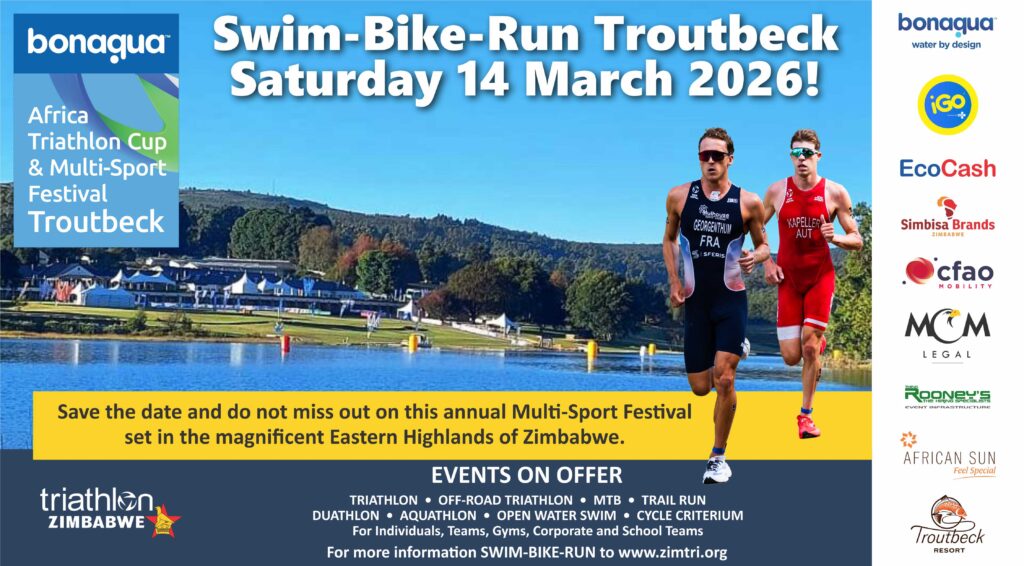 July 9, 2025 Triathlon Zimbabwe Africa Cup, News, Troutbeck, Uncategorized 0 0 If you missed it this year – DIARISE NOW for this absolutely “MUST DO” event !!! Put it on your bucket list and come and join us at the beautiful TROUTBECK RESORT for a weekend packed with exciting sport, sun, fun and entertainment !